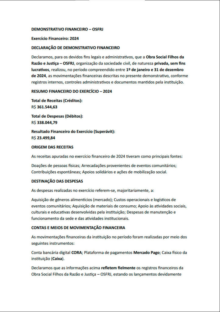 Demonstrativo Financeiro 2024
